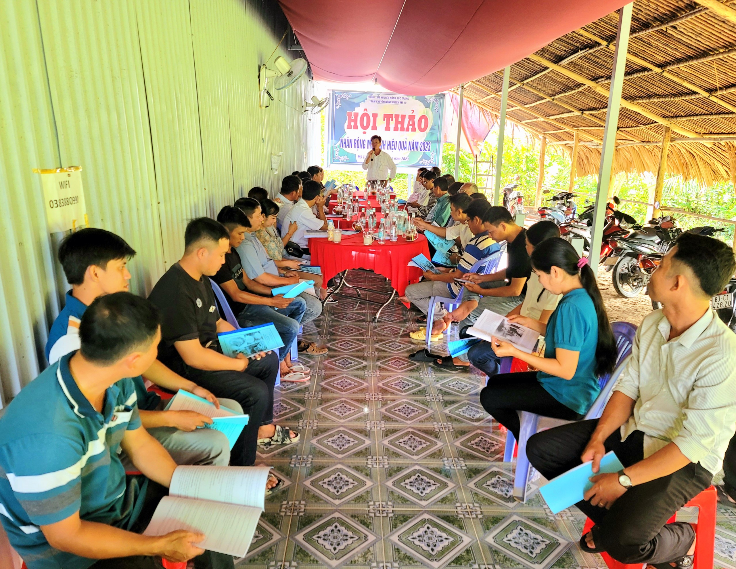 Chiều ngày 14/12, tại vườn Vú sữa Hoàng Kim, ấp Mỹ Tân, xã Mỹ Hương, Trạm khuyến nông huyện Mỹ Tú tổ chức Hội thảo Nhân rộng mô hình hiệu quả năm 2023. Đến dự có điện lãnh đạo Phòng nông nghiệp và phát triển nông thôn huyện, Hội phụ nữ huyện, Huyện đoàn và 40 nông dân thực hiện các mô hình trình diễn, nông dân có mô hình sản xuất hiệu quả, công tác viên khuyến nông các xã, thị trấn.